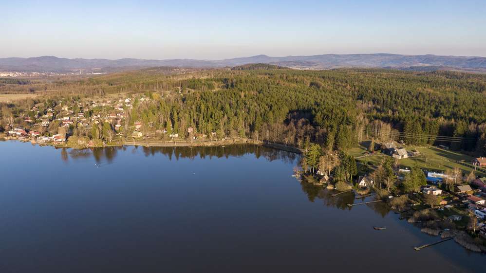 Uměle vytvořená rekreační vodní plocha u Chodova