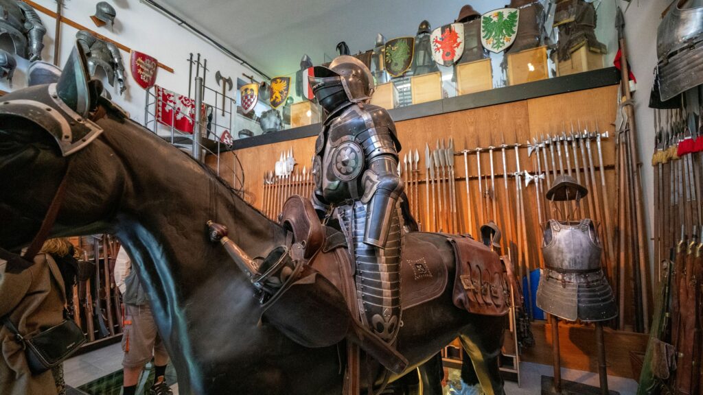 - unikátní koňskou zbroj s maketou koně v životní velikosti