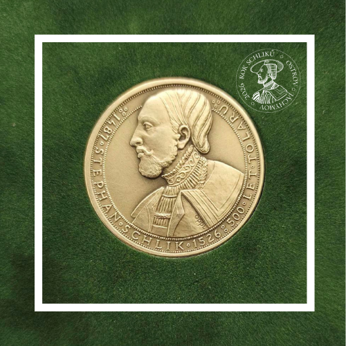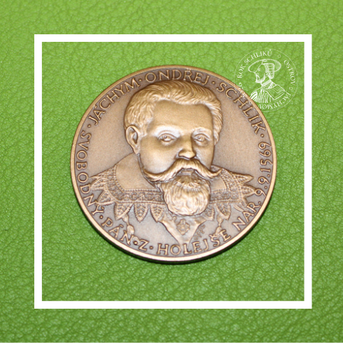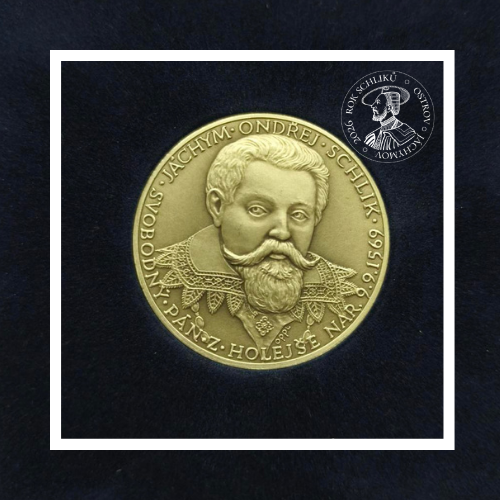Sbírková medaile s motivem Jáchyma Ondřeje Schlika. Elegantní postříbřená povrchová úprava. Dodávána v dárkové krabičce – ideální jako dárek nebo památka.