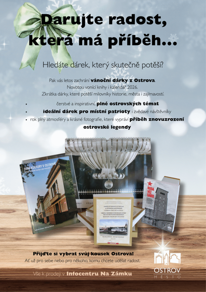 Hledáte dárek, který má hodnotu, duši a kus Ostrova v sobě? V Infocentru Na Zámku najdete letošní pěknou nadílku – tři nové knihy a unikátní kalendář 2026. Všechny spojuje jedna věc: nejsou to obyčejné dárky. Každý z nich vypráví příběh našeho města, jeho minulost i současné proměny.